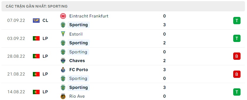 Phong độ gần đây Sporting CP