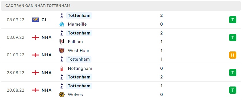 Phong độ gần đây Tottenham