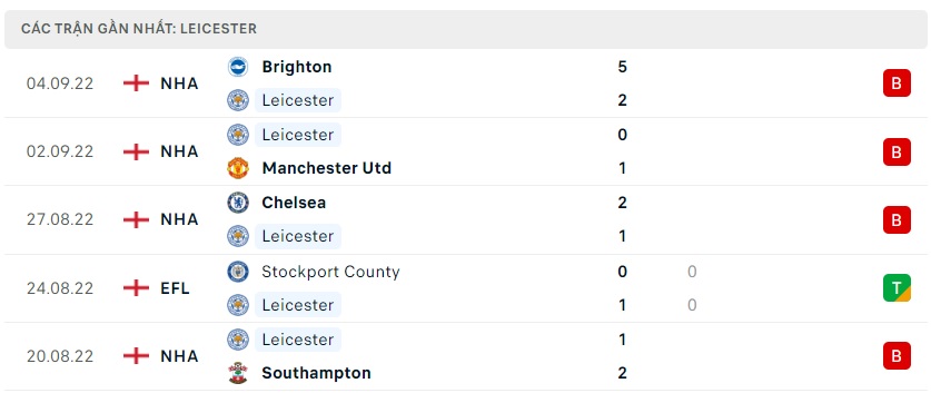 Phong độ gần đây Leicester