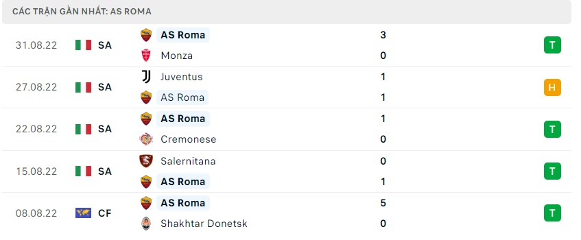 Phong độ gần đây AS Roma
