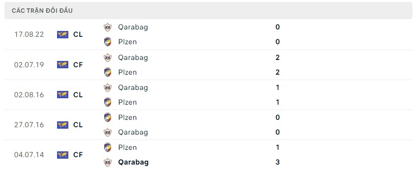 Thành tích đối đầu Viktoria Plzen vs Qarabag FK