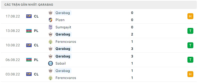 Phong độ gần đây Qarabag FK