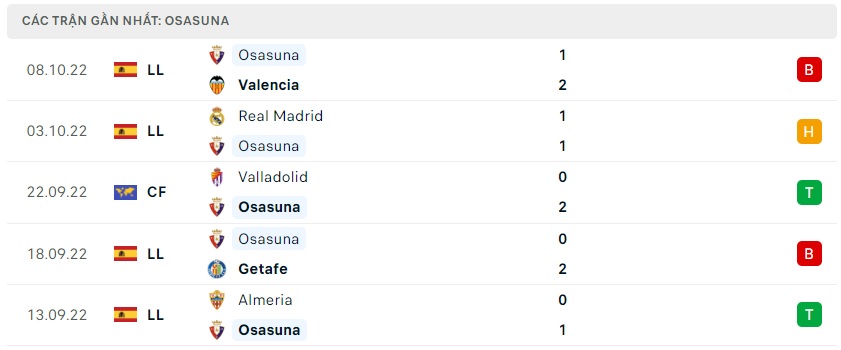 Còn với Osasuna họ đã không còn duy trì được sự hưng phấn như giai đoạn đầu mùa giải năm nay, 3 vòng đấu liên tiếp gần đây Osasuna chỉ tạo nên bất ngờ là việc cầm chân Real Madrid nhưng 2 trận sân nhà liên tiếp lại đều phải nhận thất bại, từ nhóm đầu bảng ở giai đoạn đầu mùa thì thời gian qua Osasuna đã rơi xuống vị trí thứ 8 với 13 điểm đang có được sau 8 vòng đầu mùa này.