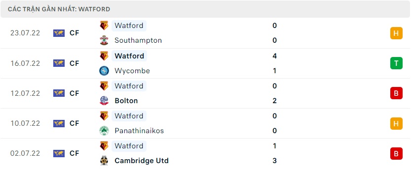 Phong độ gần đây Watford