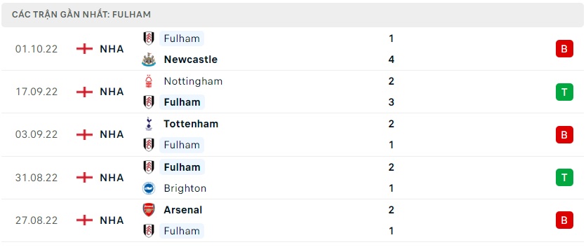 Phong độ gần đây Fulham