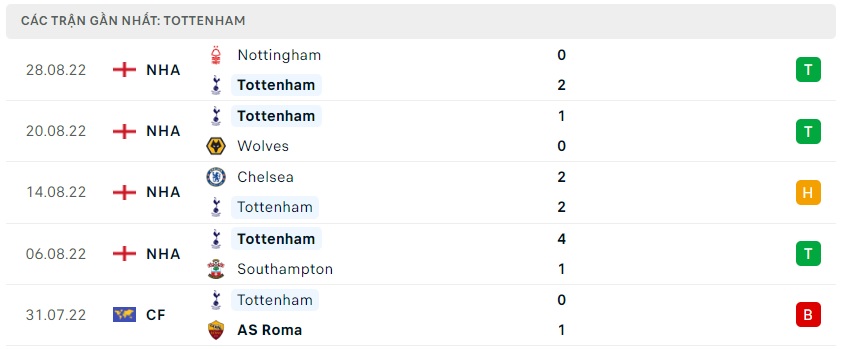 Phong độ gần đây Tottenham